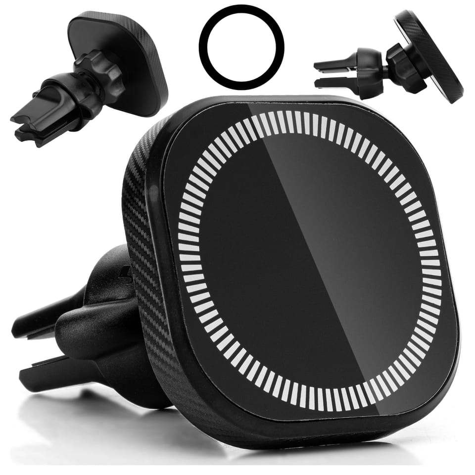 Uchwyt samochodowy na telefon MAGGRIPKompatybilność: wszystkie modele telefonów | Kolor: czarny⭐️ Magnetyczne mocowanie telefonu⭐️ Do zestawu dołączona blaszka magnetyczna⭐️ Kompatybilny z etui z funkcją MagSafe⭐️ Obrotowa głowica 360°⭐️ Zakup od producenta Magnetyczny uchwyt samochodowy Maggrip to niezawodne i stylowe rozwiązanie dla każdego kierowcy, który chce mieć telefon zawsze pod ręką. Dzięki zaawansowanej technologii magnetycznej oraz łatwemu montażowi na kratce wentylacyjnej, Maggrip zapewnia maksymalną wygodę i bezpieczeństwo podczas jazdy. Stabilne mocowanie gwarantuje, że Twój telefon pozostanie na miejscu, nawet na wyboistej drodze. Obrotowa głowica 360° umożliwia pełną swobodę ustawienia urządzenia, a elegancki design idealnie wpasowuje się w wystrój każdego samochodu. To produkt, który łączy funkcjonalność z estetyką, dostosowując się do Twoich potrzeb. ZaletySzybki i prosty montaż na kartce nawiewuMagnetyczne mocowanie telefonu za pomocą dołączonej do zestawu blaszki magnetycznejKompatybilny z etui z funkcją MagSafe [bez dodatkowej blaszki]Obrotowa głowica 360°Trwałość i jakość wykonaniaBezpieczeństwo w czasie jazdy Cechy produktuMontaż: Na kratkę wentylacyjnąTechnologia mocowania: Magnetyczna, za pomocą nakładki magnetycznejObrotowa głowica: 360°Materiał wykonania: wykonany z trwałego tworzywa sztucznego (PC)Wymiary głowicy: 6 cm x 6 cmWaga: 50 g Pamiętaj - nie korzystaj z telefonu w trakcie jazdy! Informacje dodatkowePrzedstawione kolory należy traktować poglądowo - mogą odbiegać od rzeczywistych ze względu na różne ustawienia monitorów oraz proces obróbki zdjęć. Rzeczywiste wymiary mogą się różnić od podanych wyżej. Tolerancja błędów może wynosić +/- 5%.Marka:GockowiakKod EAN:5902340331590Sposób montażu:na kratkę wentylacyjnąKolor:: czarny matMateriał:mocne tworzywoKompatybilny z MagSafe:takWymiary głowicy: 6 x 6 cm
