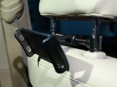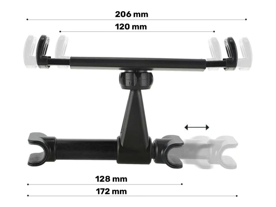 Uchwyt pasuje do większości modeli telefonów i tabletów z ekranem o przekątnej od 4" do 11" (przed zakupem należy sprawdzić dokładne wymiary). Mocowany jest do zagłówka przy pomocy specjalnych siłowników (128-172mm). Komponenty wykonane z wysokiej jakości materiałów sprawiają, że bez obaw możemy zamontować w uchwycie nawet dużych rozmiarów urządzenia. Uchwyt posiada miękkie, antypoślizgowe nakładki w wewnętrznej części szczęk zaciskowych, które zadbają o bezpieczeństwo naszego urządzenia. Wyposażony został w obrotową głowicę 360 stopni, która zapewnia użytkownikowi wygodę.