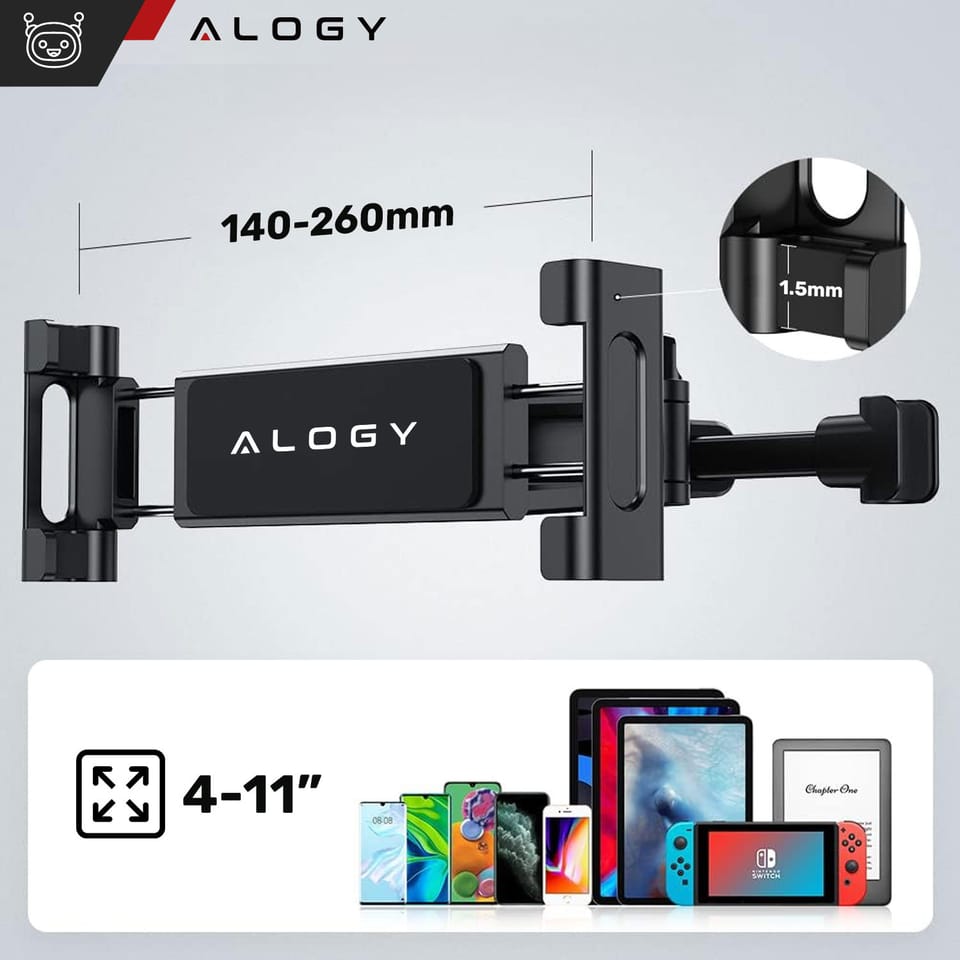 Uchwyt samochodowy na zagłówek auta samochodu na telefon tablet nintendo 4-11 cal Alogy Czarny