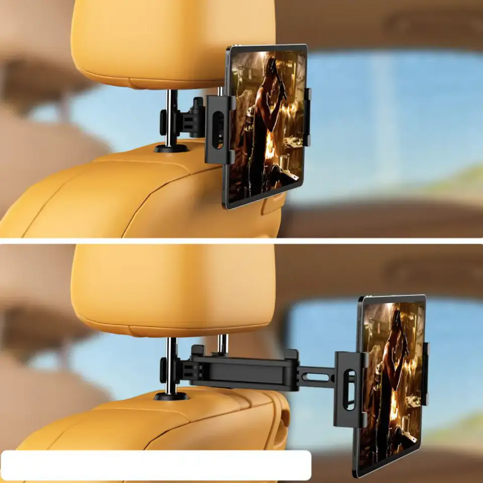 Montowany na zagłówek fotela pozwoli stabilnie utrzymać zarówno telefon jak i tablet w każdych warunkach, zabezpieczając urządzenie przed przemieszczaniem.