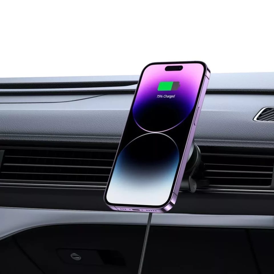 Główną cechą uchwytu Magsafe jest wykorzystanie magnesów, które doskonale przylegają do telefonu z funkcją MagSafe, zapewniając mocne i pewne trzymanie bez konieczności użycia tradycyjnych blaszek magnetycznych. Montaż na kratce wentylacyjnej sprawia, że uchwyt jest wygodnie umieszczony w zasięgu kierowcy i nie zajmuje cennego miejsca na desce rozdzielczej.
