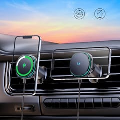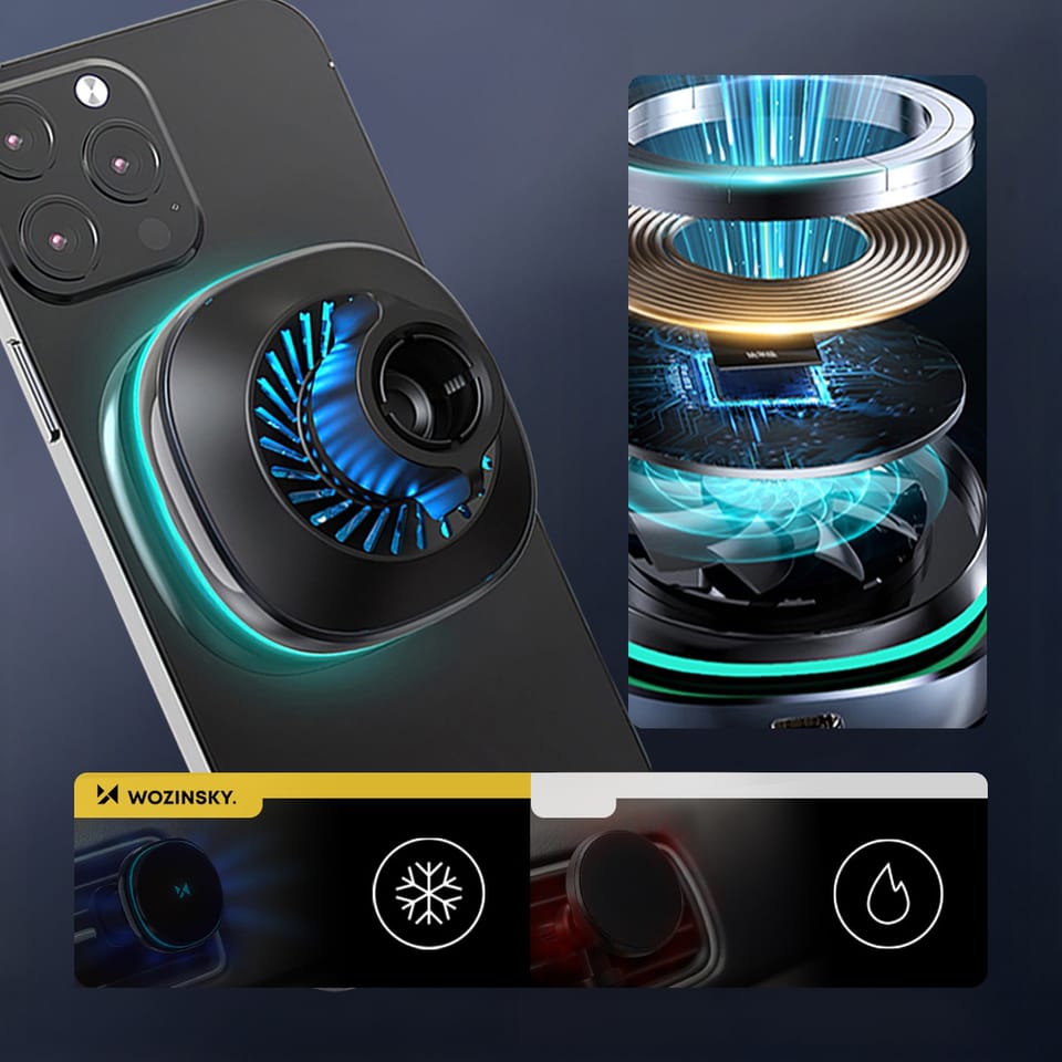 Kod produktu: 1031327Wozinsky WCT5-Q6S2Y to inteligentne połączenie uchwytu samochodowego, szybkiej ładowarki bezprzewodowej oraz aktywnego chłodzenia. Dzięki mocy do 15W ładuje Twój telefon szybko i bezpiecznie, a wbudowany cichy wentylator wspomaga odprowadzanie ciepła, zapewniając optymalną temperaturę podczas ładowania. Uchwyt obsługuje technologię MagSafe oraz dołączony pierścień magnetyczny, dzięki czemu współpracuje zarówno z iPhone#8217;ami od serii 12 wzwyż, jak i innymi smartfonami z ładowaniem bezprzewodowym (Qi). Zastosowane magnesy N52 (20 sztuk) zapewniają wyjątkowo stabilne trzymanie urządzenia, a podwójny hak umożliwia solidny montaż na kratce wentylacyjnej. Całość dopełnia elegancki, kompaktowy design i pełna możliwość regulacji kąta widzenia.Cechy produktu: