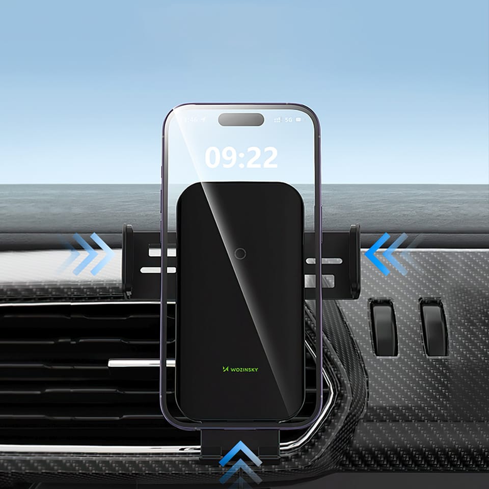 Kod produktu: 1031329Wozinsky WEDZ-3Y8S to nowoczesny uchwyt samochodowy z funkcją szybkiego ładowania indukcyjnego, który łączy wygodę, bezpieczeństwo i wydajność w jednym eleganckim urządzeniu. Dzięki automatycznemu mechanizmowi zaciskowemu wystarczy wsunąć telefon, a ramiona uchwytu same go zabezpieczą. Obsługuje szybkie ładowanie bezprzewodowe do 15W, oferując kompatybilność z większością smartfonów obsługujących standard Qi - od iPhone 16 po modele Android. Stabilny montaż na kratkę wentylacyjną i pełna regulacja kąta widzenia (360deg;) sprawiają, że korzystanie z nawigacji i ładowania jest intuicyjne i bezpieczne. To niezastąpione rozwiązanie dla kierowców ceniących porządek, estetykę i nowoczesną technologię w aucie.Cechy produktu:
