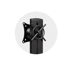 Pokrętło umożliwia szybką i łatwą regulację wysokości (9,4"-18,5"), pochylanie i obracanie (+/- 10°), obracanie do orientacji poziomej lub pionowej (+/- 180°) oraz blokowanie monitora na miejscu. Szybkozłączka VESA upraszcza instalację monitora.
