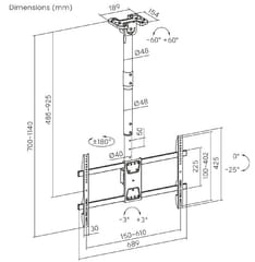 Uchwyt oferuje szeroki zakres regulacji, który pozwala dostosować pozycję ekranu dokładnie do swoich potrzeb. Kąt nachylenia można regulować do 25° w dół, a możliwość obrotu o 180° zapewnia wygodne ustawienie telewizora w dowolnym kierunku.