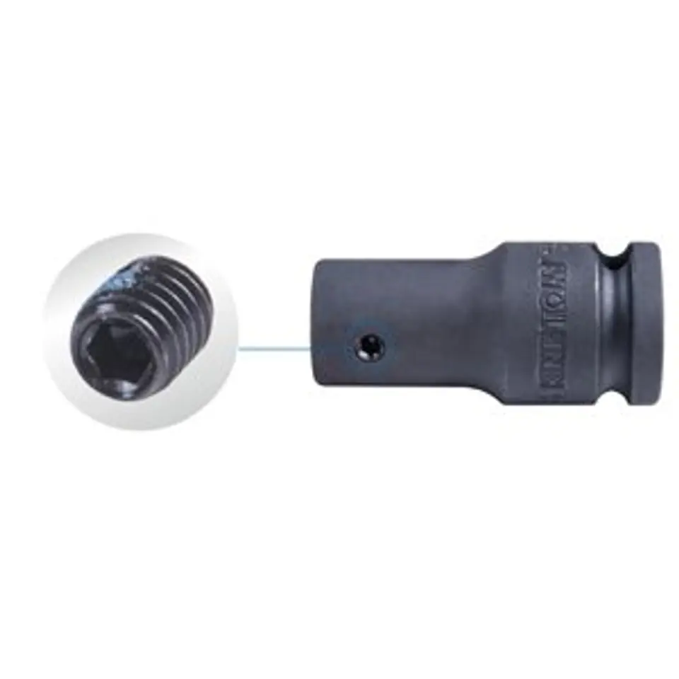 Adapter udarowy 3/8" umożliwiający zamocowanie bitów 1/4" ze śrubą zabezpieczającą bit przed wypadnięciem. Materiał: stal chromowo-molibdenowa, fosforyzowana.