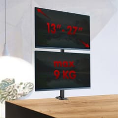 Specyfikacja- Producent: Maclean- Model: MC-966- Maksymalne obciążenie: 9 kg- Przeznaczony do monitorów: od 13" do 27"- Przelotki na przewody- Możliwość regulacji stopnia nachylenia: od +45° do -45°- Możliwość obrotu monitorów: od +180° do -180°- Całkowita wysokość: 800 mm- Pasuje do blatów o szerokości: 10-50 mm- Możliwość montażu do blatu biurka lub stołu- Kolor: czarny (lakierowanie proszkowe)- W komplecie zestaw śrub montażowych oraz do przykręcenia monitorów, polska instrukcja montażu- VESA: 75x75, 100x100 mm