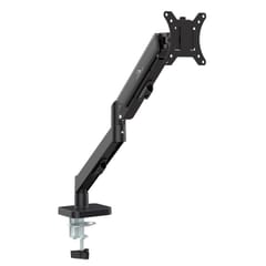 Specyfikacja- Producent: Maclean- Model: MC-133- Kolor: czarny- Materiał wykonania: stal malowana proszkowo, tworzywo sztuczne- Przeznaczony dla monitorów o przekątnej: od 17 do 32 cali- Maksymalne obciążenie: 10 kg- Standard mocowania VESA: 75x75, 100x100- Zakres regulacji nachylenia ekranu: od -45 do +45°- Zakres obrotu ekranu: od -90 do +90°- Zakres obrotu ramienia w przegubie: 180°- Zakres obrotu ramienia przy podstawie: 180°- Regulacja wysokości ekranu: 200-445 mm- Długość dolnego ramienia: 180 mm- Długość górnego ramienia: 200-271 mm (w zależności od pozycji)- Mechanizm regulacji: sprężyna gazowa- Montaż: do blatu biurka lub w otworze na przewody- Pasuje do blatów o szerokości: od 10 do 50 mm- Rozmiar dołączonych śrub do monitora: M4x12, M5x12
