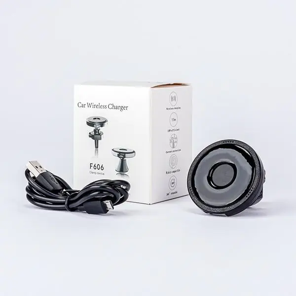 F606 uchwyt samochodowy z szybkim bezprzewodowym ładowaniem 10W, montowany na kratkę wentylacyjną. Do mocowania telefonu w uchwycie zamontowana jest specjalna taśma z technologią NANO Glue Pad, dzięki której Twój telefon stabilnie trzyma się uchwytu. Inteligentny chip wykrywa urządzenia z opcją szybkiego indukcyjnego ładowania a dzięki obrotowej głowicy możesz ustawić telefon w każdej pozycji w jakiej chcesz.