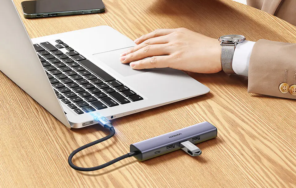 Czy możesz coś zrobić w takiej sytuacji? Oczywiście, sięgnij po HUB marki Ugreen. Z jego pomocą przekształcisz pojedynczy port USB Typ C Twojego komputera w 4 dodatkowe złącza!