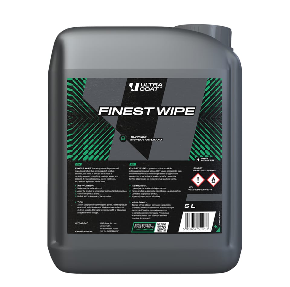 Finest Wipe to specjalistyczny produkt przeznaczony do finalnej inspekcji i odtłuszczania lakieru. Skutecznie usuwa pozostałości past polerskich, silikonów, wosków i wypełniaczy, pozostawiając powierzchnię idealnie czystą i przygotowaną pod aplikację powłok ochronnych, sealantów lub wosków.
