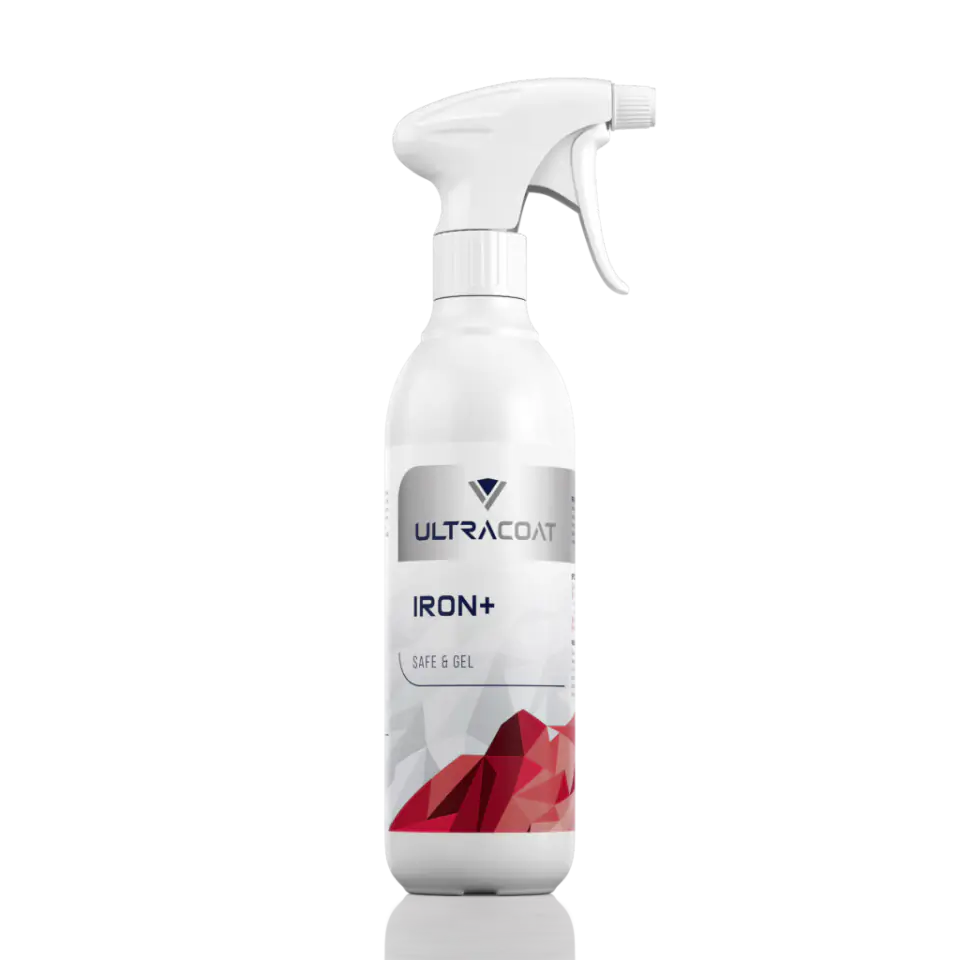 Ultracoat Iron+ – to produkt służący do usuwania zabrudzeń metalicznych i lotnej rdzy. Żelowa struktura Iron+ zapewnia długi czas działania czyszczonej powierzchni. Produkt posiada neutralne pH, co sprawia, że jest w pełni bezpieczny dla karoserii, felg, chromu, gumy, szkła a przede wszystkim dla Ciebie. Wywołuje dobrze znany efekt krwawienia. Szybko i głęboko penetruje czyszczoną powierzchnię, dlatego rezultat działania Iron+ możesz dostrzec już chwilę po aplikacji. Cząsteczki rdzy, czy opiłków hamulcowych bez trudu odchodzą z czyszczonego elementu, pozostawiając go w stanie wolnym od jakichkolwiek zabrudzeń metalicznych.