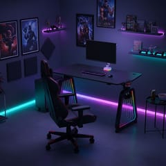 Średniej wielkości biurko bazuje na wzmocnionej ramie ze stali oraz grubym pulpicie z warstwą ochronną. Gwarantuje stabilność, wytrzymałość oraz wysoki komfort użytkowania. Materiały o podwyższonej jakości sprawiają, że utrzyma swoje estetyczne oraz funkcjonalne walory przez bardzo długi okres czasu. Wzorowe biurko dla ambitnego gracza, który oczekuje przemyślanego projektu mebla. Idealna podstawa do budowy stanowiska opartego na dowolnych platformach gamingowych.