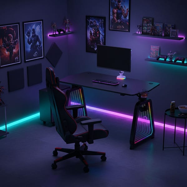 Projektując nasze biurka staramy się zadbać o każdy najdrobniejszy szczegół. Systemy zarządzania kablami, odpowiednio usytuowanie przepusty raz unikatowe akcesoria i uchwyty to wszystko składa się na fantastyczną atmosferę w tracie każdej rozgrywki.