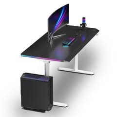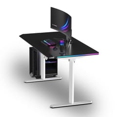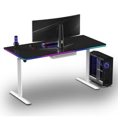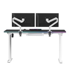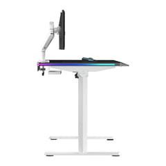 Specyfikacja technicznaWymiary blatu: 140x70 cmZakres regulacji wysokości: 72-120 cmRodzaj regulacji: ElektrycznaPamięć ustawień: 2 zaprogramowane pozycjeOświetlenie: LED RGB PRISMATICElementy dodatkowe: pilot do sterowania oświetleniem, panel sterowania z wyświetlaczem, półka na kable i listwy zasilająceDostępne kolory ramy: biała, czarna, szaraDostępne kolory blatu: biały, czarny, szary