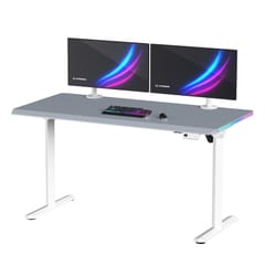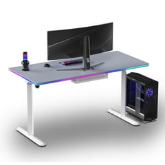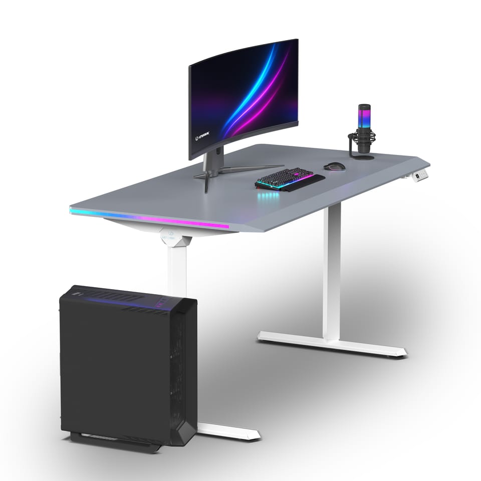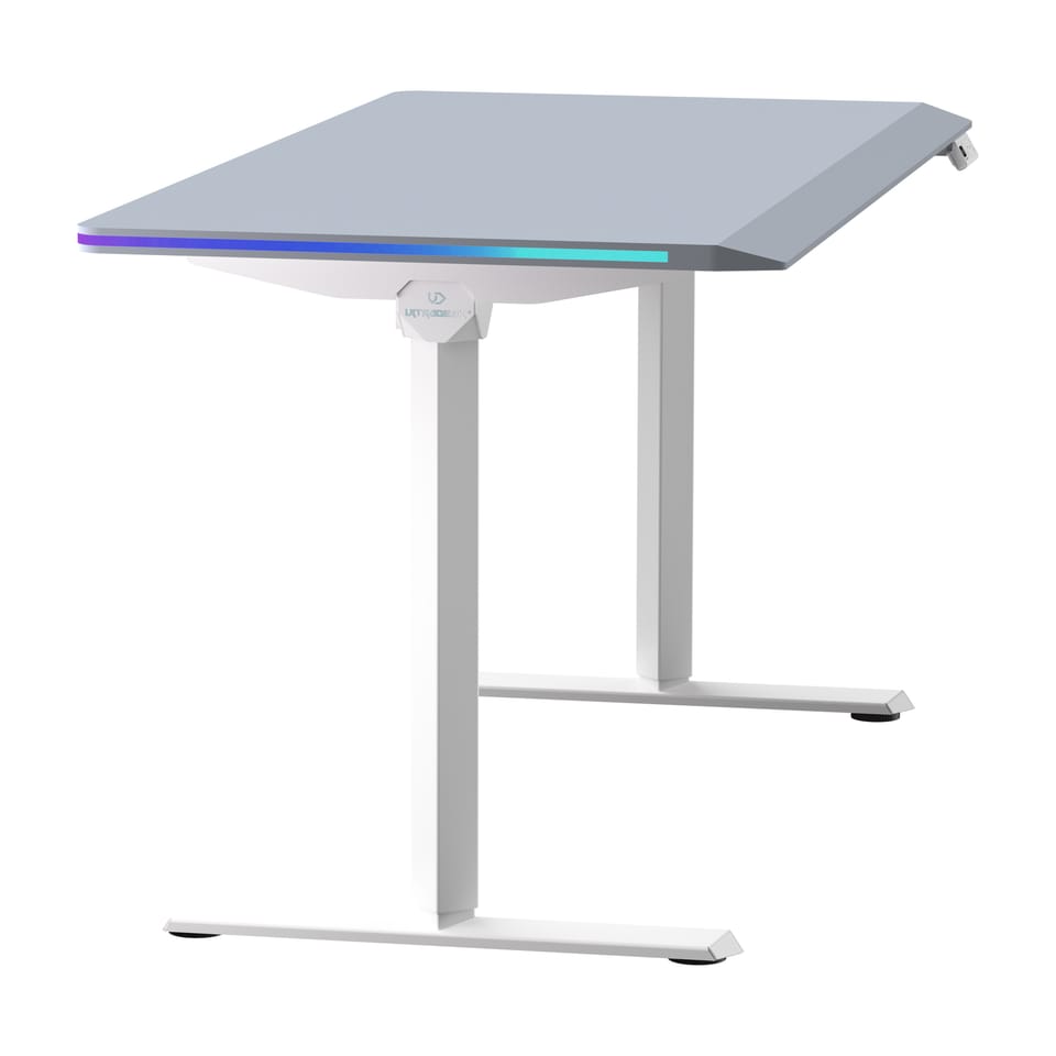 Specyfikacja technicznaWymiary blatu: 140x70 cmZakres regulacji wysokości: 72-120 cmRodzaj regulacji: ElektrycznaPamięć ustawień: 2 zaprogramowane pozycjeOświetlenie: LED RGB PRISMATICElementy dodatkowe: pilot do sterowania oświetleniem, panel sterowania z wyświetlaczem, półka na kable i listwy zasilająceDostępne kolory ramy: biała, czarna, szaraDostępne kolory blatu: biały, czarny, szary