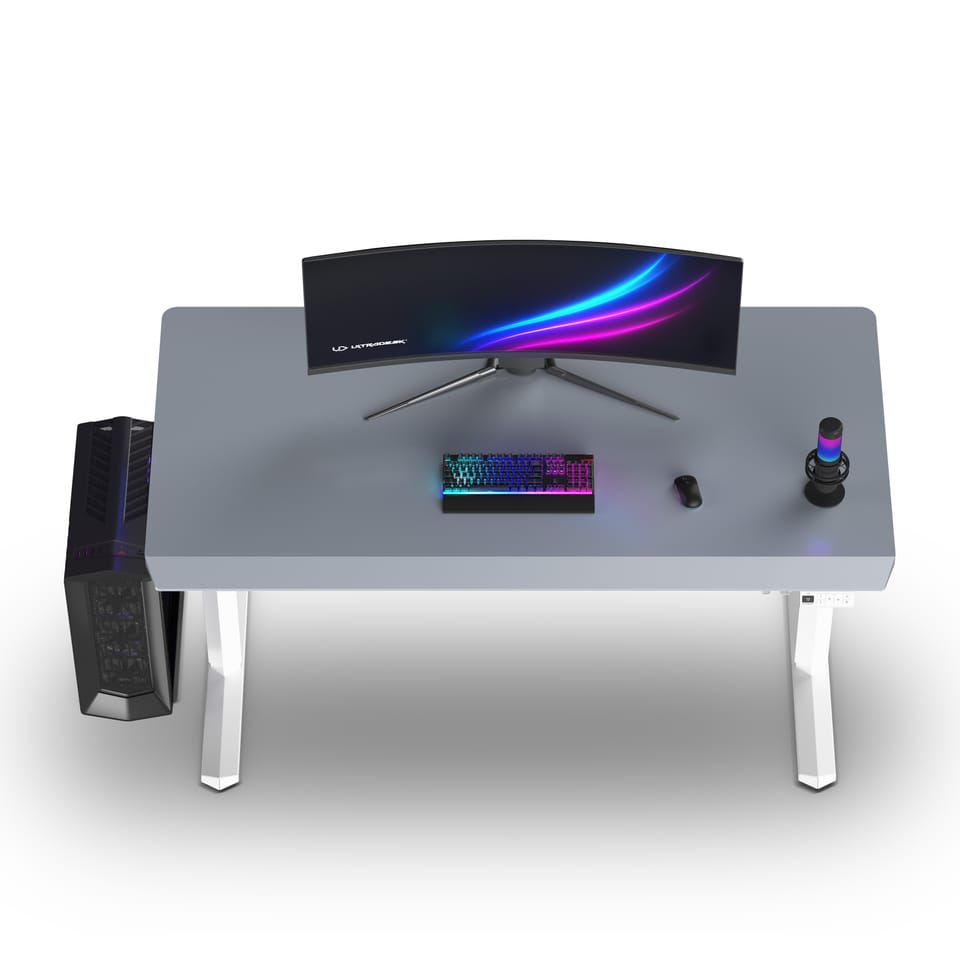 Zintegrowane oświetlenie LED RGB PRISMATIC oferuje 7 stałych kolorów oraz aż 146 efektów świetlnych, które można dostosować za pomocą dołączonego pilota. Technologia PRISMATIC zapewnia intensywniejsze barwy niż standardowe podświetlenie LED RGB, co w połączeniu z fluorescencyjnymi logotypami ULTRADESK na bokach biurka tworzy unikalny, dynamiczny wygląd. Wszystkie elementy świetlne zostały estetycznie zintegrowane z konstrukcją mebla, zachowując spójność stylistyczną.