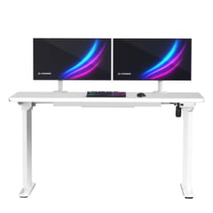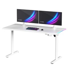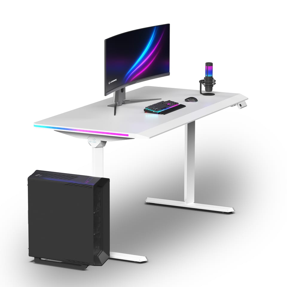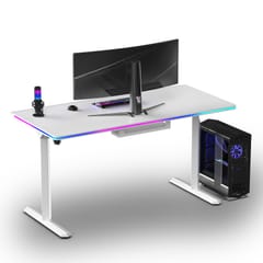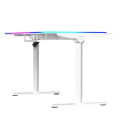 Specyfikacja technicznaWymiary blatu: 140x70 cmZakres regulacji wysokości: 72-120 cmRodzaj regulacji: ElektrycznaPamięć ustawień: 2 zaprogramowane pozycjeOświetlenie: LED RGB PRISMATICElementy dodatkowe: pilot do sterowania oświetleniem, panel sterowania z wyświetlaczem, półka na kable i listwy zasilająceDostępne kolory ramy: biała, czarna, szaraDostępne kolory blatu: biały, czarny, szary