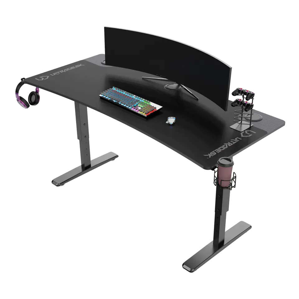 ULTRADESK CRUISER to jedno z najobszerniejszych biurek w ofercie Ultradesk, o powierzchni blatu 160 x 70 cm. Powierzchnia blatu z łatwością mieści złożone konfiguracje PC z trzema monitorami oraz bardzo dużą ilość dodatkowych akcesoriów. Przednia strona blatu została wycięta, aby znacząco poprawić właściwości ergonomiczne podczas wielogodzinnej aktywności przy komputerze lub konsoli do gier. Przestrzeń robocza została osadzona na sztywnej trwałej ramie i nigdy nie ugina się pod ciężarem sprzętu. Nośność biurka Ultradesk to aż CRUISER 120 kg!