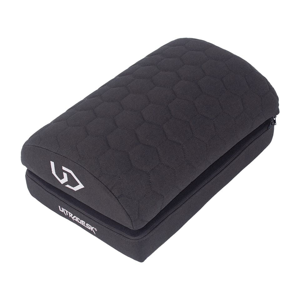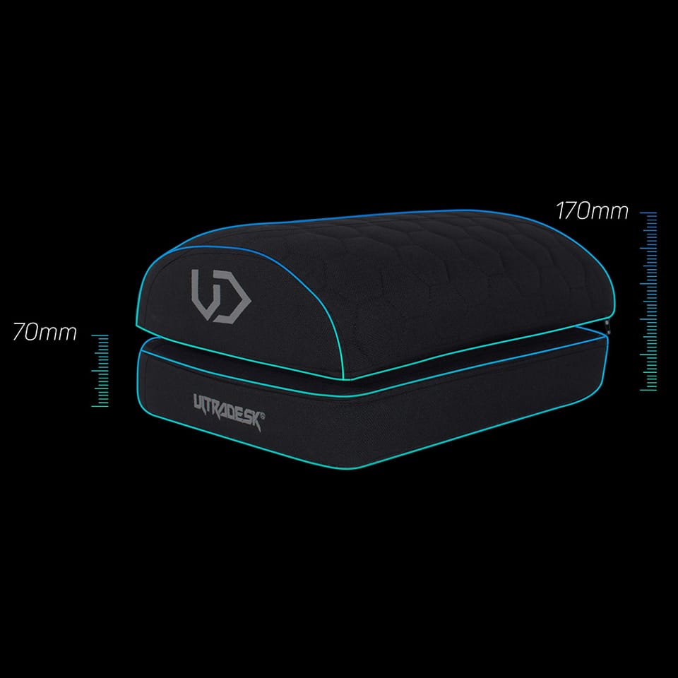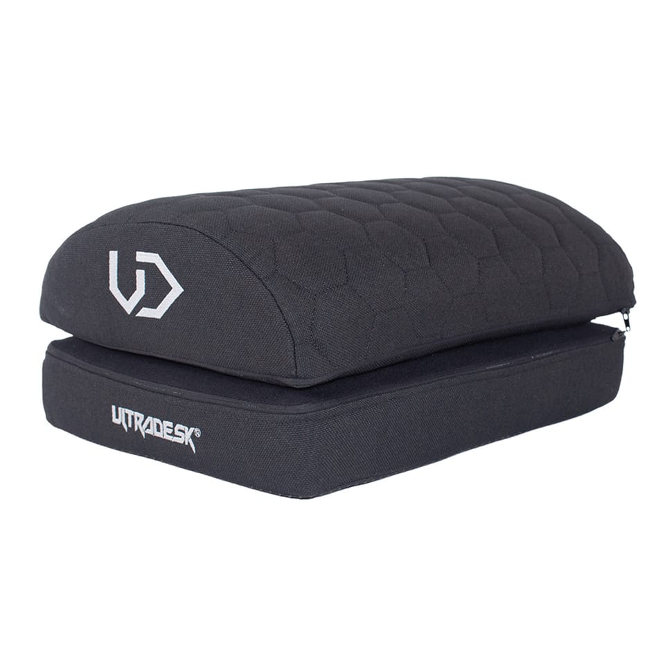 ULTRADESK FRONTSTEP podnóżek z wypełnieniem Memory Foam pomaga w utrzymaniu zdrowej postawy ciała w pozycji siedzącej. Dzięki ergonomicznym właściwościom utrzymuje krążenie w stopach na zdrowym poziomie. Przeciwdziała bólom kręgosłupa i stóp pojawiającym się z powodu utrzymywania ciała przez dłuższy czas w niezdrowej pozycji. Z podnóżkiem dolegliwości natury zdrowotnej przejdą do przeszłości, nawet jeśli musicie podczas gry spędzić długi czas w pozycji siedzącej.Dla jeszcze lepszego dopasowania do użytkownika docelowego, produkt dysponuje dwoma poziomami wysokości. Aby obniżyć podnóżek, wystarczy usunąć jego podstawę. Proces zajmuje kilka sekund. Obniżona wersja podnóżka jest chętnie wybierana przez osoby o niższym wzroście. Maksymalna wysokość wynosi 17 centymetrów.Podnóżek FRONTSTEP został wyprodukowany w uniwersalnym rozmiarze. Oznacza to, że bez względu na wzrost i masę ciała, pozostanie on zawsze w stu procentach użyteczny, a jego walory ergonomiczne nie zostaną zredukowane. Może służyć osobom dorosłym, dorastającym lub dzieciom. Jego uniwersalny rozmiar sprawia również, że jest odpowiedni dla każdego rozmiaru i kształtu stopy.Dzięki warstwie z materiału antypoślizgowego umieszczonej na powierzchni spodniej przedmiot zawsze pozostanie w preferowanym miejscu. Warstwa antypoślizgowa to kolejny element zapobiegający zmęczeniu nóg, gdyż nie musicie ciągle korygować pozycji stóp. Materiał zachowuje swoją charakterystykę bez względu na rodzaj materiału, z jakiego zbudowana jest podłoga w pokoju docelowym.Dolna podstawa podnóżka została wypełniona pianką HR. Podobnie jak główna komora jest ona całkowicie odporna na szpecące wgniecenia. Zawsze po zakończeniu sesji przed komputerem powróci samoczynnie do swojej pierwotnej formy. Dzięki temu podnóżek nie straci swoich pozytywnych walorów zdrowotnych, a także zawsze będzie doskonale przylegał do podłoża.Wypełnienie podnóżka ma kluczowe znaczenie dla jego trwałości. Nasza legendarna jakość Ultradesk zobowiązuje nas do troski o każdy szczegół naszych produktów. Dlatego FRONTSTEP został w całości wypełniony wysokiej jakości pianką typu „MEMORY”, która zawsze pozostaje sprężysta. Za każdym razem ponownie dostosowuje się do anatomicznej charakterystyki stóp użytkownika.Każdy element podnóżka został wykonany z surowców gwarantujących długowieczność. Zarówno powłoki zewnętrzne jak i wszystkie zastosowane typy wypełnienia to rozwiązania materiałowe z najwyższej półki. Zachowają kształt i strukturę przez bardzo długi czas. Wybór materiałów jest kluczowy dla trwałości podnóżka, gdyż jego użytkownicy potrafią wywierać spory nacisk na ściany zewnętrzne tego typu produktu, w szczególności podczas pasjonującej gry.Specyficzny kształt sprawia, że produkt niemalże samoczynnie wymusza na użytkowniku przyjęcie zalecanej postawy. Ergonomiczny przedmiot, który gwarantuje stabilną i komfortową pozycję ciała. Dodatkowo warstwa wierzchnia o strukturze plastra miodu wspomaga wentylację stóp oraz aktywuje układ krążenia.Funkcjonalność ULTRADESK FRONTSTEP nie ogranicza się jedynie do podstawowej pozycji siedzącej. Jego właściwości można z powodzeniem wykorzystać również w pozycji odchylonej do tyłu lub leżącej. Jeśli w przerwie przed kolejną rundą gry chcecie się dodatkowo zrelaksować, wystarczy że odchylicie fotel komputerowy i odpowiednio ustawicie podnóżek. Można go także zastosować jako podporę pod łydki lub kolana.