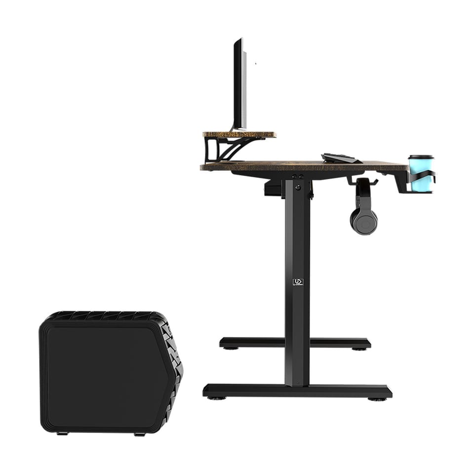 Biurko Ultradesk HIGHLANDER XXL to zaawansowany technologicznie mebel, który oferuje wyjątkową funkcjonalność dla wymagających użytkowników, szczególnie graczy. Dzięki elektrycznemu systemowi płynnej regulacji wysokości w zakresie od 72 do 117 cm, biurko można dostosować do indywidualnych preferencji, umożliwiając wygodną pracę zarówno na siedząco, jak i na stojąco. Nowoczesny silnik elektryczny pozwala na bezpieczne i płynne unoszenie lub obniżanie pulpitu, a panel sterowania zapewnia intuicyjną obsługę, w tym możliwość zapisywania dwóch ulubionych ustawień wysokości. Wysokiej klasy komponenty gwarantują długą żywotność i niezawodność mechanizmu.