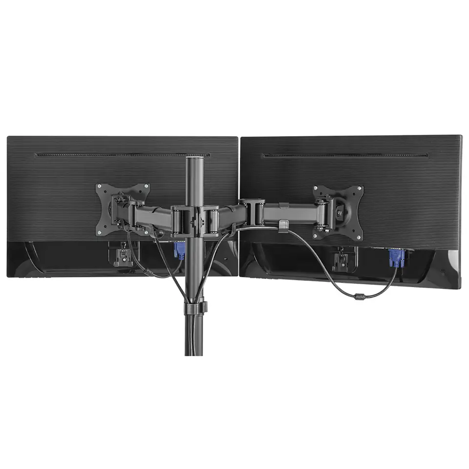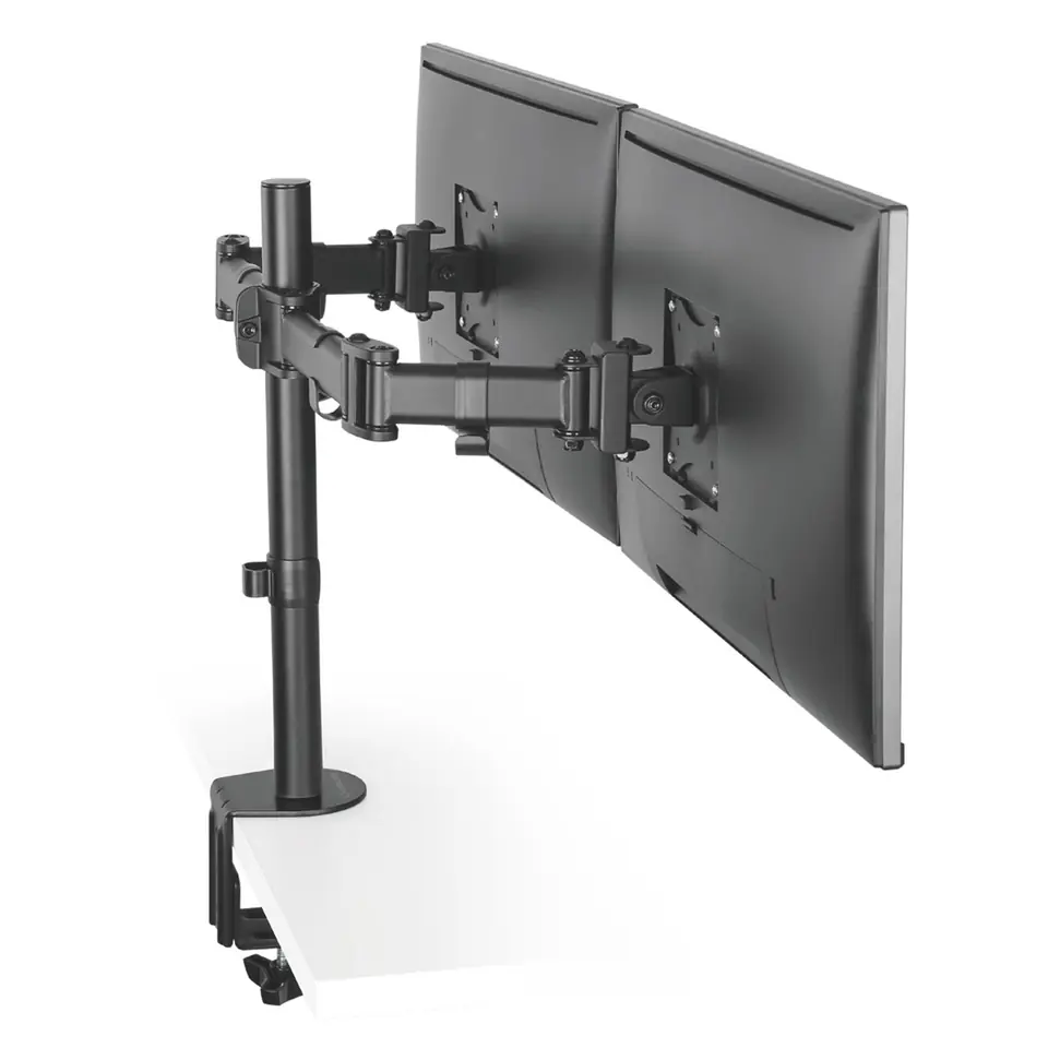 ULTRADESK SKELETON Double Regulowany uchwyt na 2 monitory, czarny, 16KG, mocowanie na zacisk, 17"-30", 75x75/100x100