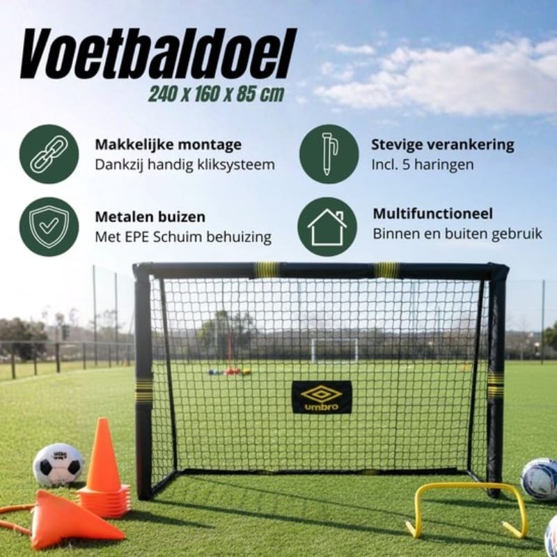 Umbro – Bramka do piłki nożnej metalowa z siatką 240 x 160 x 85 cm