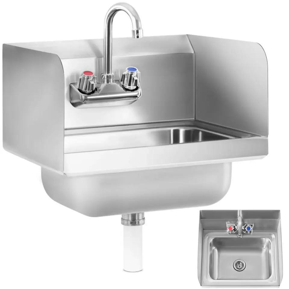Kod producenta: 10010510Profesjonalna umywalka do rąk została specjalnie zaprojektowana do zastosowania w punktach gastronomicznych, gabinetach, sklepach i wszędzie tam gdzie niezbędna jest wysoka higiena oraz łatwość zachowania czystości. Zlew posiada wysokie ścianki zabezpieczające przed rozpryskami wody. Wysoka jakość wykonania z polerowanej stali nierdzewnej ułatwia czyszczenie i zabezpiecza umywalkę przed uszkodzeniami. W zestawie jest wysokiej jakości, ruchomy kran ze wszystkimi niezbędnymi elementami. Umywalka jest przystosowana do zamontowania na ścianie.Cechy i funkcje: