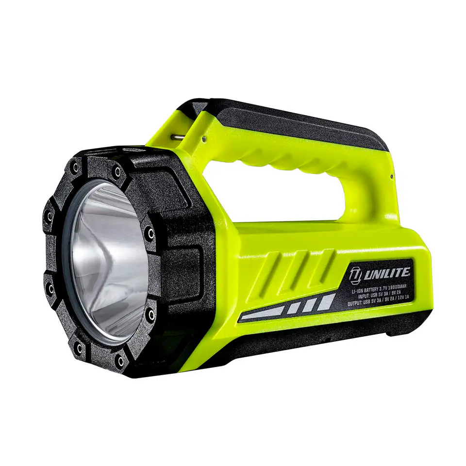 L-1800 to przemysłowy szperacz LED o mocy 1800 lumenów, o maksymalnym zasięgu 760 metrów. W jego podstawie znajduje się reflektor roboczy COB 1000 lumenów, który zapewnia rozproszony strumień światła. Wykonany z tworzywa ABS, poliwęglanu oraz aluminium, dzięki czemu jest bardzo wytrzymały. Urządzenie jest wodoszczelne i pyłoodporne według standardów IPX6. Posiada bardzo mocny akumulator litowo-jonowy o pojemności 18000 mAh wraz z wbudowanym wskaźnikiem stanu naładowania akumulatora. Gwintowany otwór w podstawie pozwala na przymocowanie reflektora do statywu. W zestawie wygodny pasek na ramię.