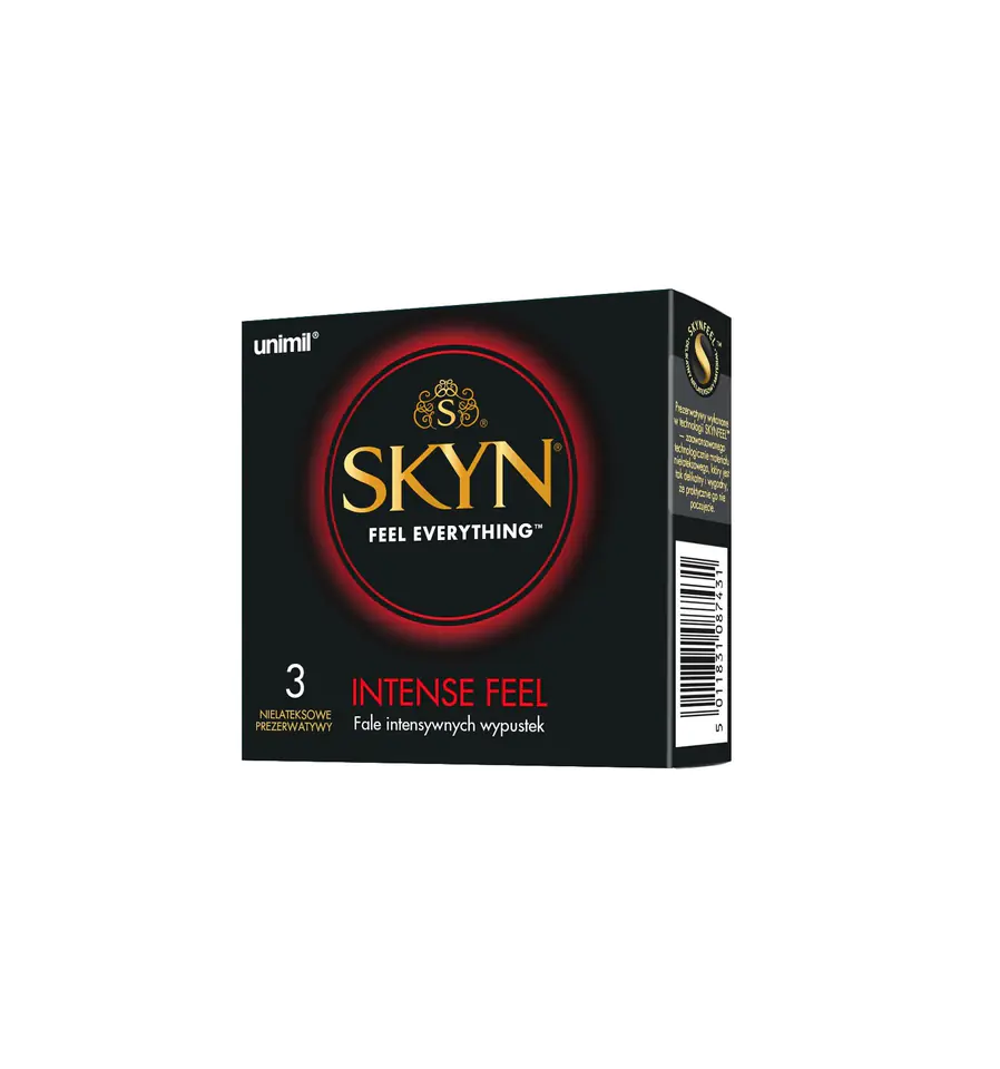 SKYN intense feel nie zawierają lateksu kauczuku naturalnego i może być stosowany przez osoby ze stwierdzoną lub możliwą alergią na naturalny lateks. Należy je przechowywać w suchym i chłodnym miejscu oraz chronić przed działaniem światła słonecznego. Przed zastosowaniem proszę zapoznać się z załączoną instrukcją. Prawidłowe stosowanie prezerwatyw pomaga obniżyć ryzyko ciąży oraz wielu chorób przenoszonych drogą płciową, żadna metoda antykoncepcji nie zapewnia 100% ochrony.