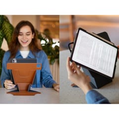 Zwiększ funkcjonalność swojego iPada dzięki zintegrowanej składanej podstawce z wbudowanym obrotowym dyskiem.