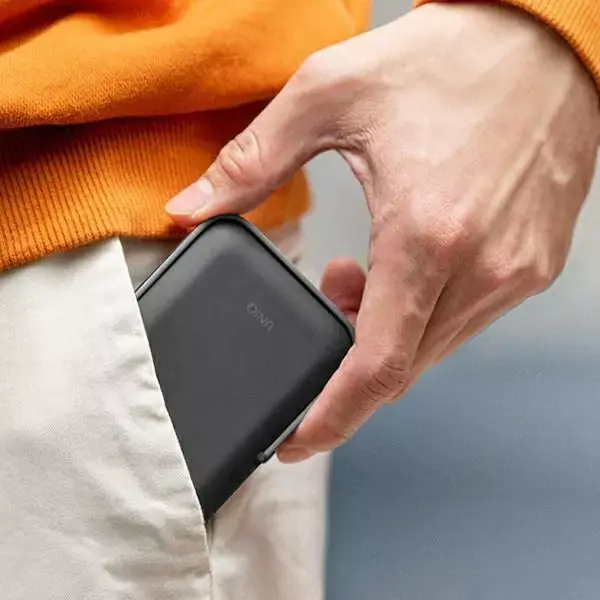 Zaprojektowany tak, aby z łatwością mieścił się w kieszeniach, co zapewnia łatwą dostępność podczas podróży. Posiada również wbudowany wskaźnik led informujący o poziomie naładowania.Power bank posiada wbudowany magnetyczny system kompatybilny z urządzeniami MagSafe. Przyłóż telefon do power banka i gotowe, teraz możesz ładować telefon, oglądać filmy, prowadzić wideokonferencja bez użycia rąk.