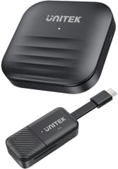 Bezprzewodowy extender HDMI Unitek V1184A01 umożliwia przesył obrazu Full HD przy 60 kl/s z laptopa lub innego urządzenia USB-C na ekran bez użycia kabli, na odległość do 50 m. Praca w pasmach 2.4G i 5G zapewnia stabilne połączenie, a zasilanie przez USB-C ułatwia szybkie uruchomienie w biurze, sali konferencyjnej lub domu.