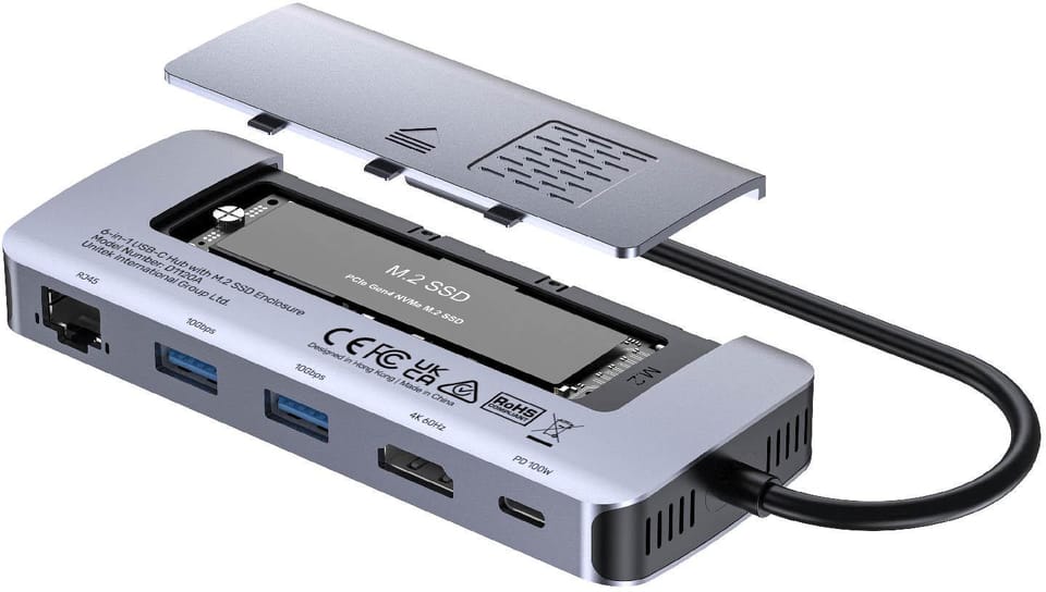 Unitek D1120A01 Aktywny Hub USB-C 10 Gbps, Obudowa na dysk M.2, HDMI