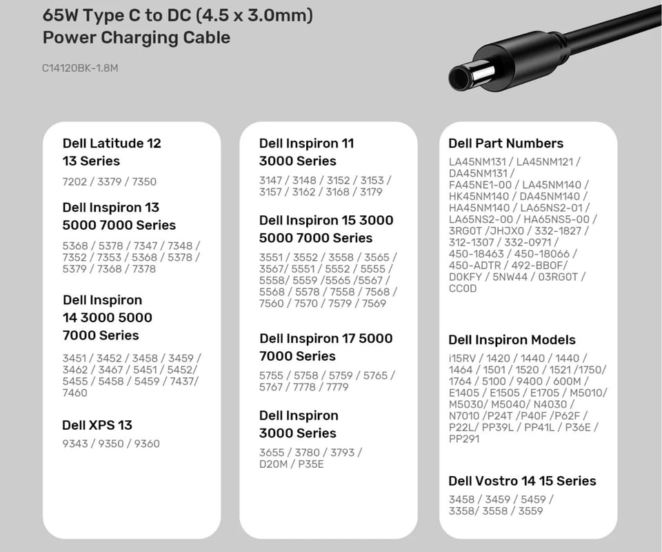 - Dell Part Numbers: LA45NM131 LA45NM121 DA45NM131 FA45NE1-00 LA45NM140 HK45NM140 DA45NM140 HA45NM140 LA65NS2-01 LA65NS2-00 HA65NS5-00 3RG0T JHJX0 332-1827 312-1307 332-0971 450-18463 450-18066 450-ADTR 492-BBOF D0KFY 5NW44 03RG0T CC0D.