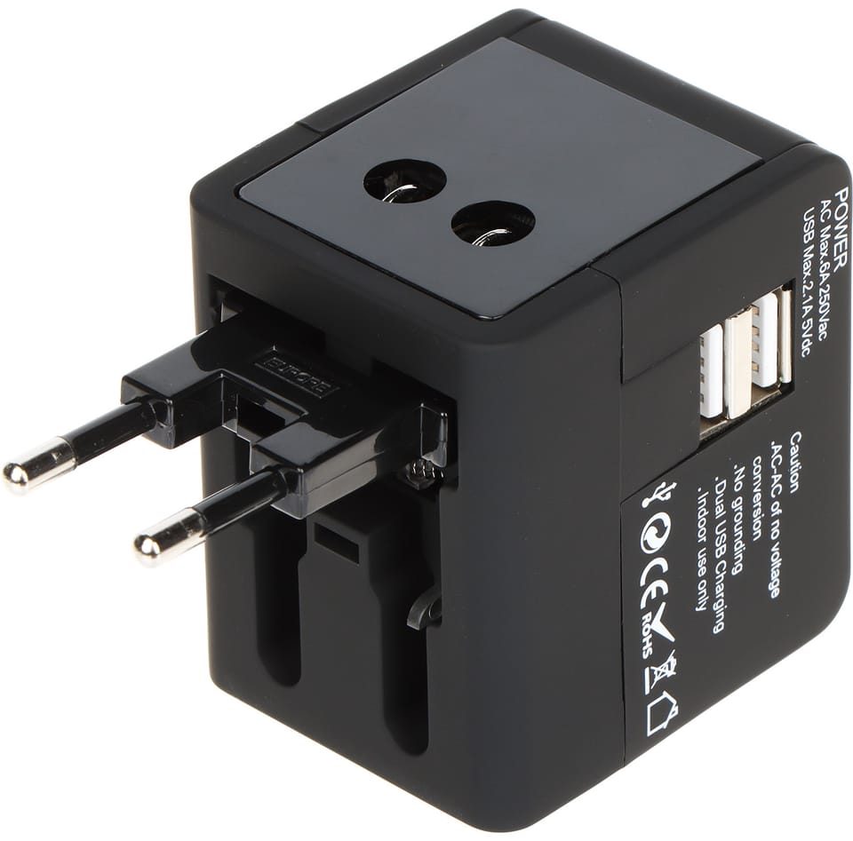 Kompaktowy adapter sieciowy wyposażony w uniwersalne gniazdo wejściowe z systemem rozkładanych wtyczek umożliwia podłączenie urządzeń do gniazdek w ponad stu krajach na całym świecieRozkładane wtyczki zgodne są z systemem europejskim, angielskim, amerykańskim i australijskim