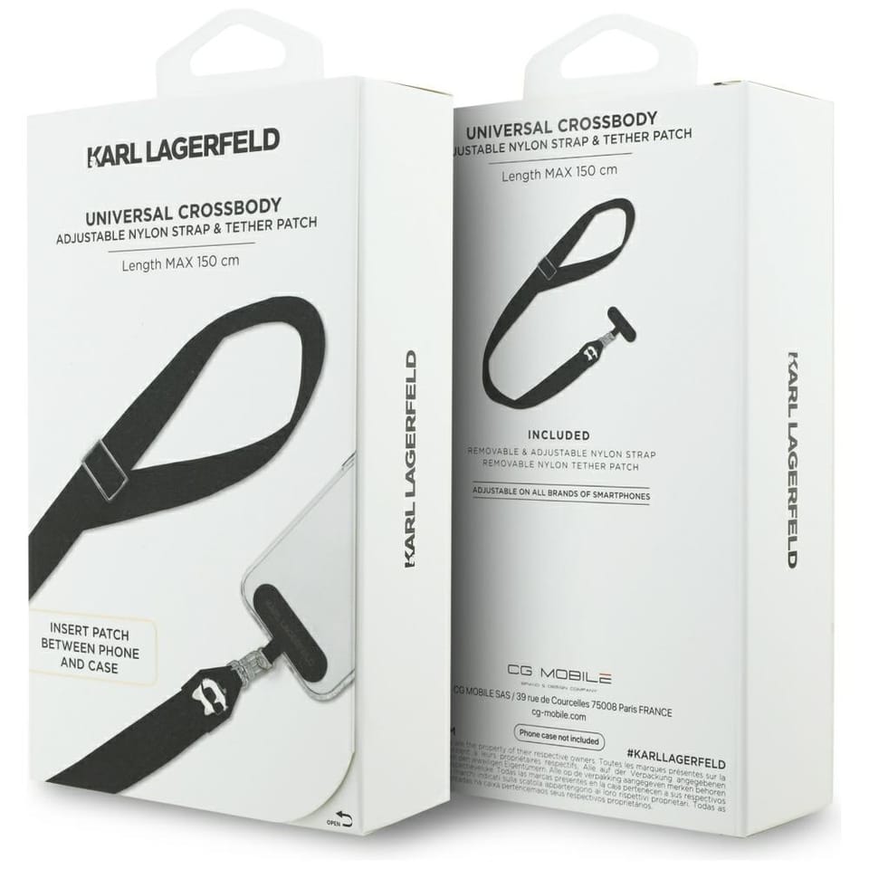 Uniwersalna smycz Karl Lagerfeld Universal Strap Tether Patch Choupette Metal Logo czarny