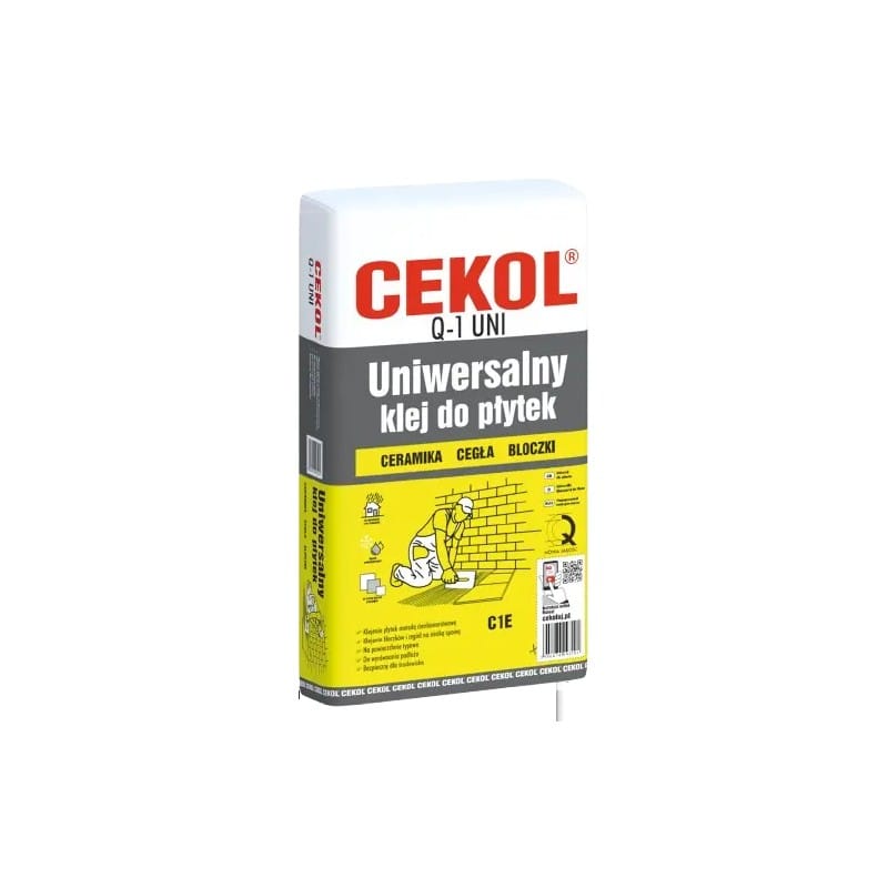 Uniwersalny klej do płytek Cekol Q-1Uni przystosowany do klejenia płytek metodą cienkowarstwową. Umożliwia również klejenie bloczków i cegieł przy zastosowaniu metody cienkowarstwowej. Świetnie nadaje się zarówno na powierzchnie typowe jak i podgrzewane.