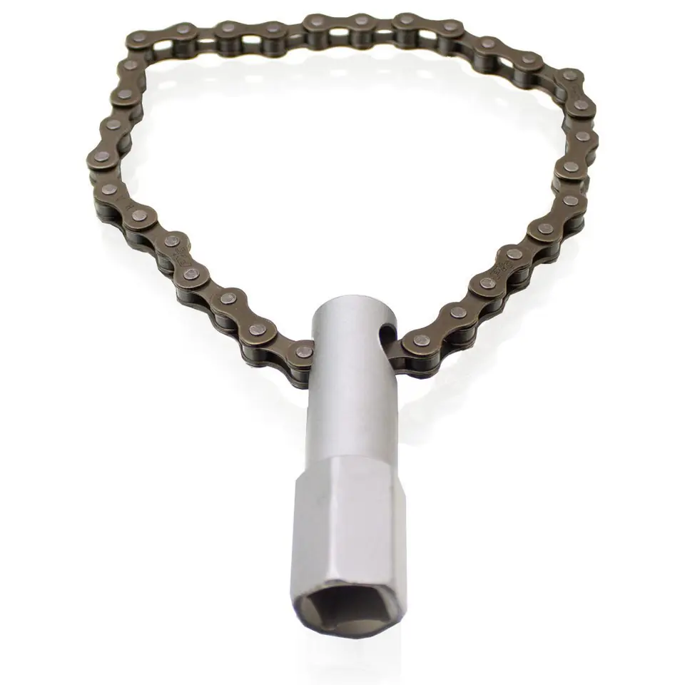 Dzięki kluczowi łańcuchowemu możesz łatwo poluzować filtr oleju w pojeździe. Łańcuch można obsługiwać za pomocą grzechotki 1/2" lub klucza sześciokątnego 20 mm. Narzędzie wykonane jest z twardej stali, dzięki czemu jest bardzo wytrzymałe i trwałe.