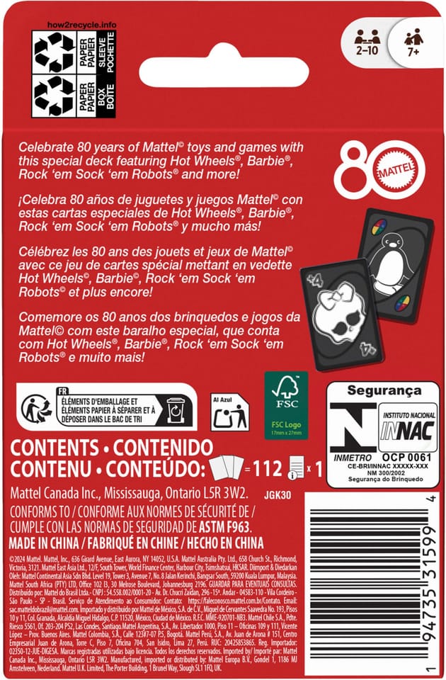 UNO Mattel 80-lecie Gra karciana