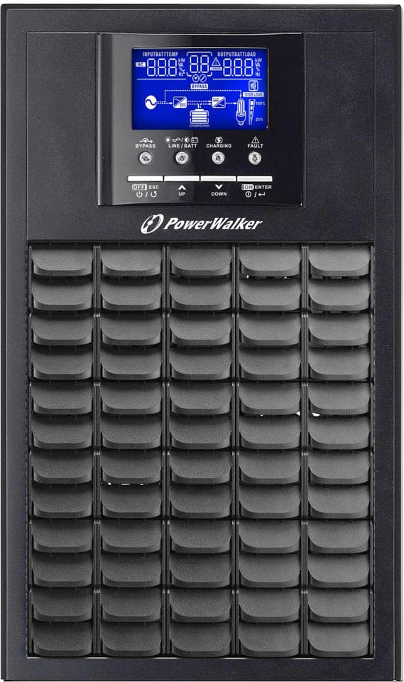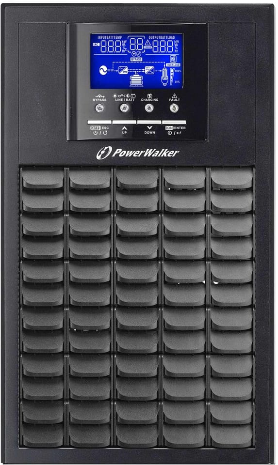 - UPS PowerWalker VFI 5000 EVS jest wyposażony w technologię podwójnej konwersji, co oznacza, że zapewnia on pełne zabezpieczenie przed skokami napięcia w sieci oraz gwarantuje zerowy czas przełączania w tryb bateryjny. To oznacza, że nawet w przypadku awarii zasilania z sieci, zasilacz przechodzi na zasilanie bateryjne natychmiastowo, bez przerwy w zasilaniu.