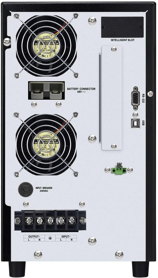 - Czas transferu (tryb AC / liniowy lub tryb akumulatorowy do trybu ECO) [ms]: Czas transferu (tryb AC / liniowy do trybu akumulatorowego) [ms]: 0 msCzas transferu (tryb ECO do trybu AC/liniowy lub tryb akumulatorowy) [ms]: 4 msCzas transferu (tryb liniowy lub tryb akumulatorowy do trybu obejściowego) [ms]: 0 msDodatkowe funkcje: funkcja zimnego startu, reset wyłącznika, dostępny tryb ECO, EPO - awaryjne wyłączenie zasilania, dostępny system uziemienia, kompatybilność z baterią zewnętrzną, HID - urządzenie interfejsu HID, kompatybilność z generatorem, wyświetlacz LCD, OBM - zoptymalizowane zarządzanie baterią, łączność równoległa, współczynnik mocy 1,0Klasyfikacja: IEC 62040-3 VFI-SS-111Baterie: zasilacz nie zawiera bateriiNapięcie prądu stałego: 1x48,0 VDodatkowe informacje o bateriach: zaprojektowany do współpracy z bateriami zewnętrznymiŁadowarka: 0-60A [10A]Zewnętrzny zestaw akumulatorów: takZgodny typ baterii: baterie kwasowo-ołowiowe, baterie litoweKomunikacja: gniazdo karty zarządzającej, USB typu B - do oprogramowania monitorującego, RS-232Oprogramowanie: ViewPowerPraca równoległa [Jednostki]: 9Temperatura pracy: 0°C – 50°CWilgotność środowiska pracy: 5% – 95% RH (bez kondensacji)IP: IP 20Zawartość paczki: UPS, instrukcja, kabel komunikacyjnyEAN: 4260074984163Wymiary produktu (gł. x szer. x wys.) [mm]: 465 x 190 x 336 mmMasa produktu [kg]: 14.2Wymiary opakowania (gł. x szer. x wys.) [mm]: 560 x 330 x 460 mmWaga opakowania [kg]: 15,7