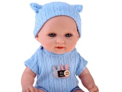Lalka ubrana jest w miękkie, zdejmowane śpioszki zapinane na rzep, dostępne w dwóch wersjach kolorystycznych - niebieskiej lub różowej. Do kompletu dołączone są także czapeczka oraz skarpetki w kolorze pasującym do ubranka. Dzięki temu dziecko może bawić się w ubieranie i rozbieranie lalki, rozwijając przy tym swoje zdolności manualne.