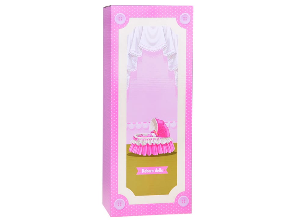 Lalka wykonana z wielką dbałością o szczegóły, ma uroczą, uśmiechniętą buzie, piękne niebieskie oczy z długimi rzęsami, głowa pokryta jest namalowanymi włosami (dzięki czemu nawet najmniejsza opiekunka może bawić się już takim bobasem). Idealny dzidziuś do opiekowania się nim.