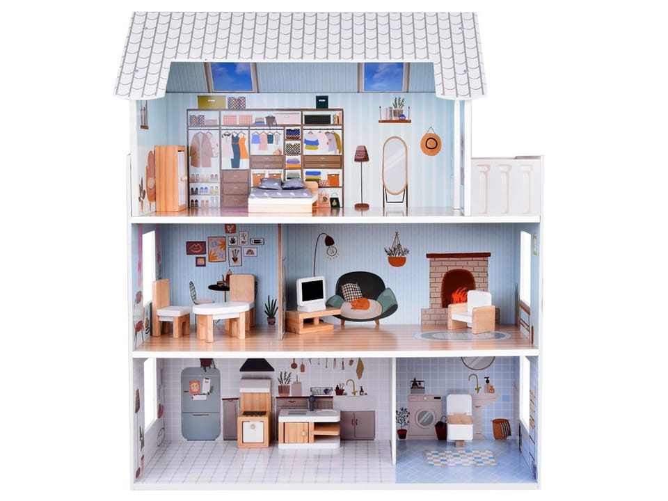 Drewniany domek to idealna zabawka, która zapewni każdej dziewczynce mnóstwo radości i kreatywnej zabawy w prowadzenie własnego domu. Ta piękna, stylowa willa dla lalek to marzenie wielu dzieci. Wyposażona w eleganckie meble oraz elegancką grafikę, pozwala na aranżację pomieszczeń według własnego pomysłu.