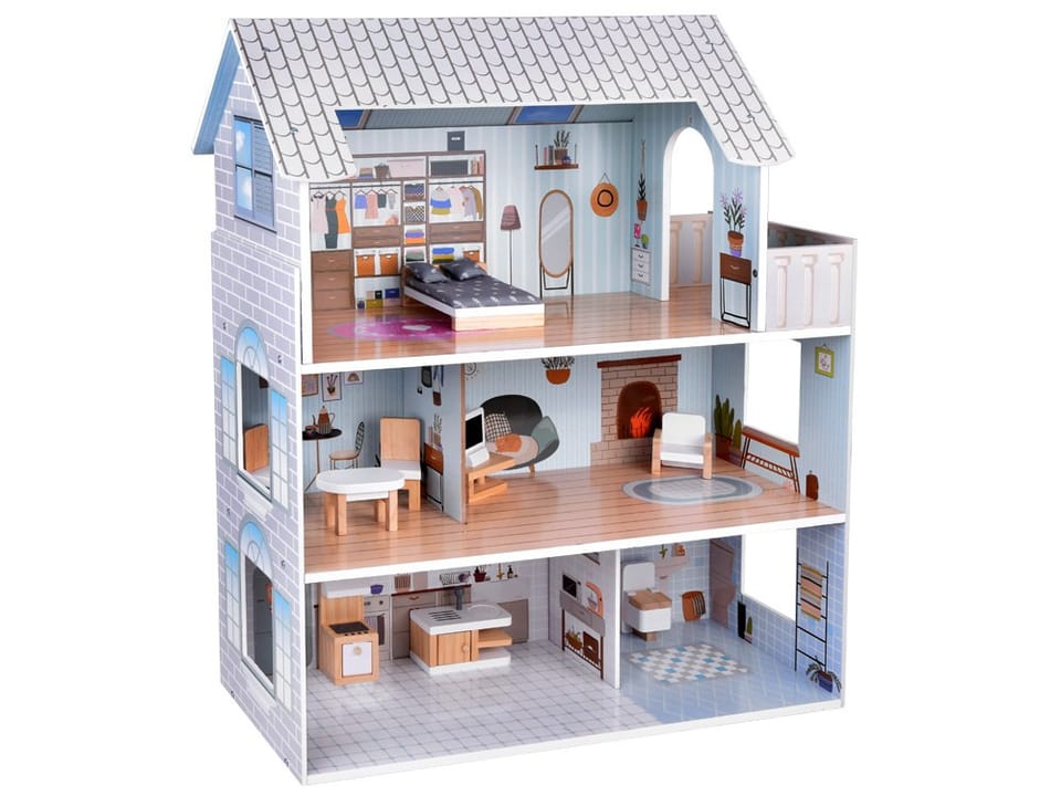 Domek posiada trzy kondygnacje, każda starannie zaprojektowana i urządzona z dbałością o detale. Doskonale nadaje się dla lalek typu Barbie czy Anlily, które również znajdziesz w ofercie sklepu Jokomisiada. W komplecie znajdują się wszystkie niezbędne meble, dzięki którym zabawa w dom będzie realistyczna i komfortowa.