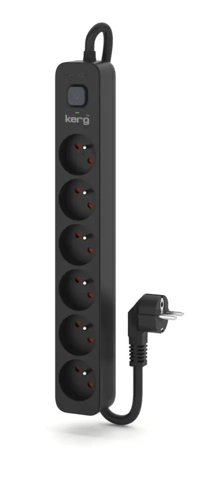 Urządz. zas.-zabezpiecz. KERG z wyłącznikiem-6 gniazd-czarny-3m-16A-H05VV-F-3x1,5mm2