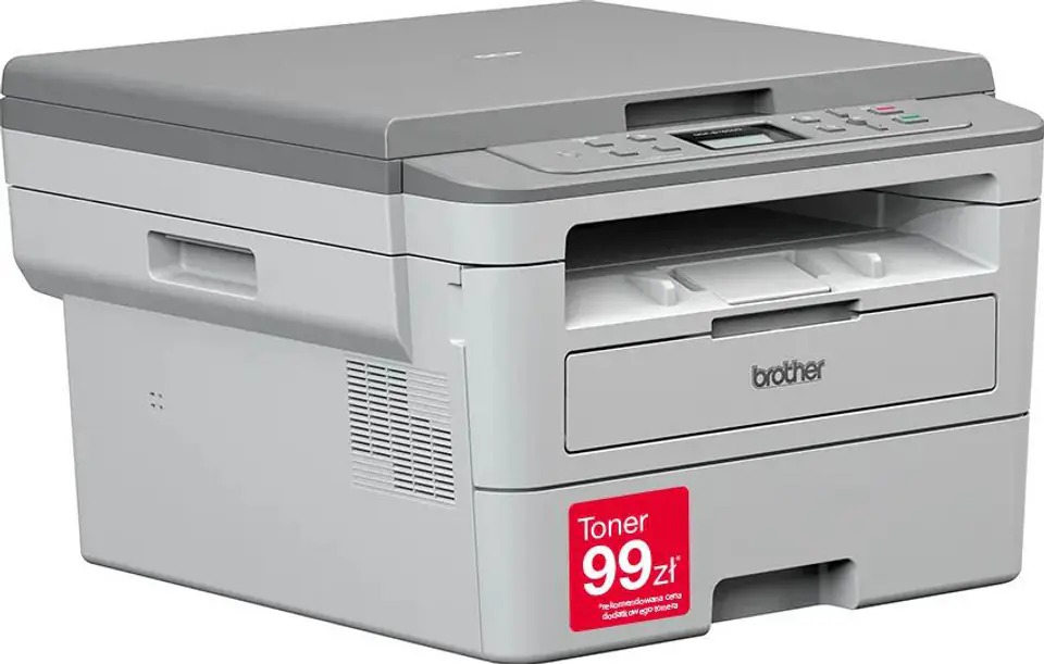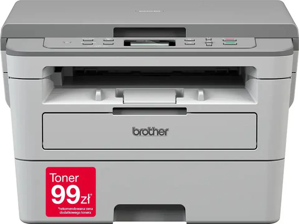 Model DCP-B7500D jest dostarczany z tonerem o wydajności 2000 stron, dzięki czemu po rozpakowaniu urządzenie jest gotowe do pracy, a wysoka wydajność tonera znacznie obniża koszt drukowanej strony i zmniejsza częstotliwość wymiany materiałów eksploatacyjnych.