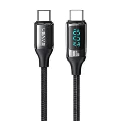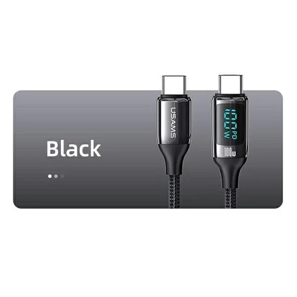 USAMS Kabel pleciony U78 USB-C na USB-C LED 1.2m 100W Fast Charging czarny/black SJ546USB01 US-SJ546