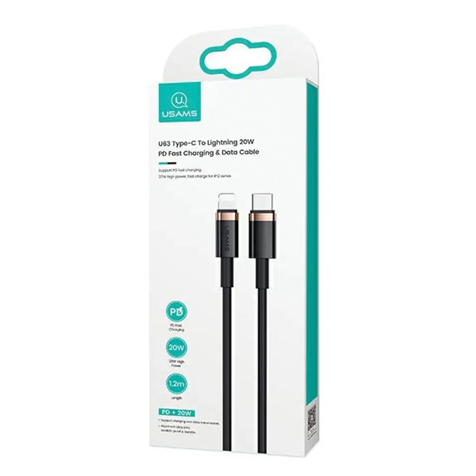 USAMS Kabel U63 USB-C na Lightning 1,2m 20W PD Fast Charge czarny/black SJ484USB01 US-SJ484